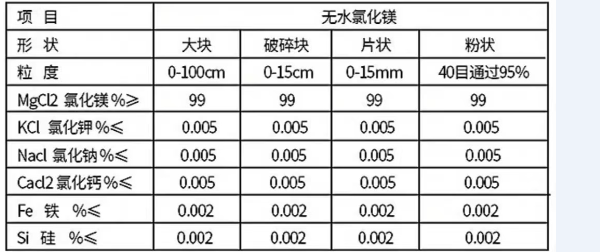 二、無水氯化鎂在我們生產無水氯化鎂廠家的分類